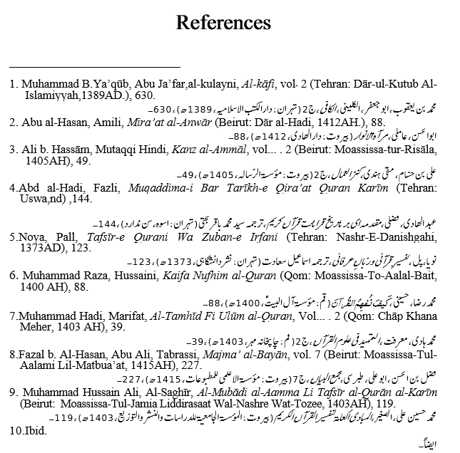 ۔۱۔ سید رمیز الحسن، موسوی، “عبقات الانوار فی امامۃ الائمۃ الاطہار”، سہ ماہی سماجی، دینی تحقیقی مجلہ نور معرفت، جلد 7، شمارہ 4  (2017): 170۔