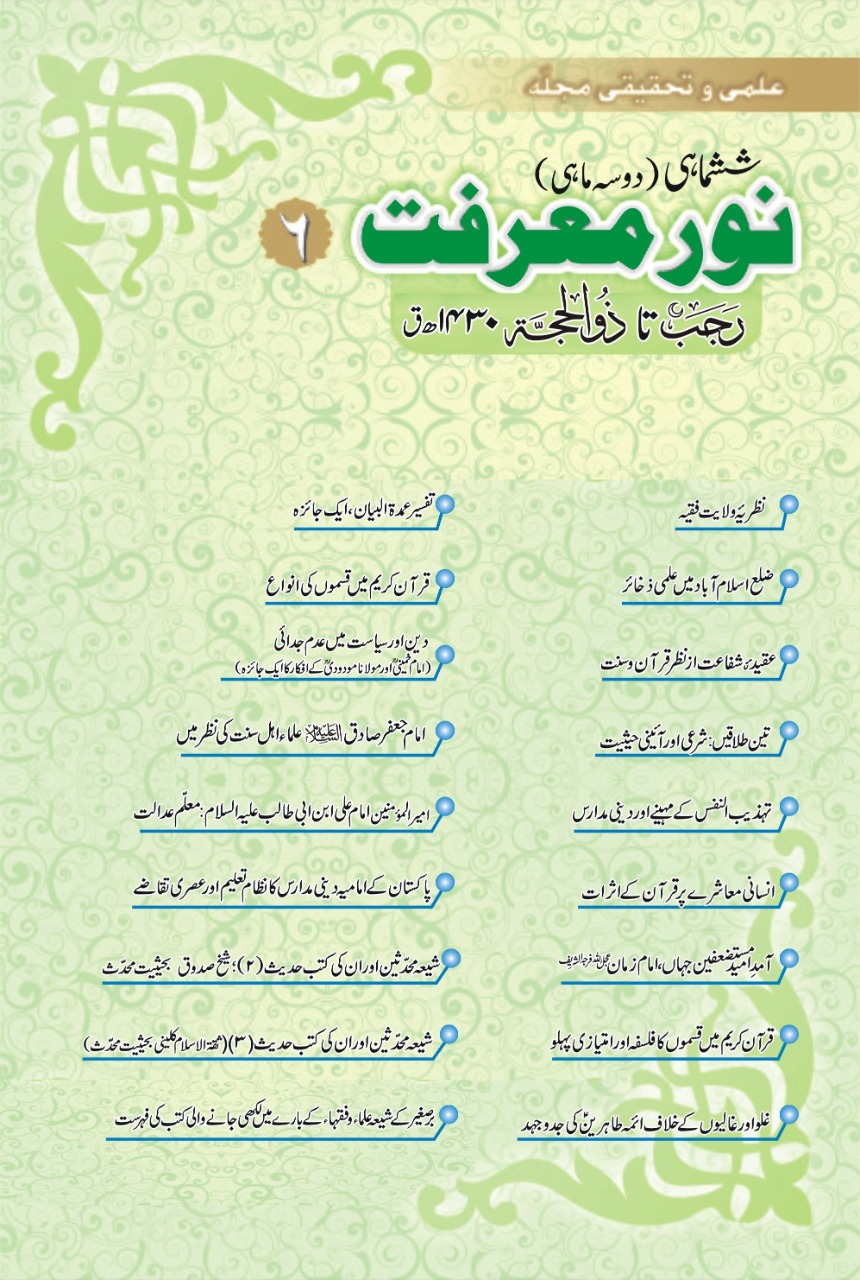 Noor e Marfat Issue 6 نور معرفت شمارہ 6: رجب، شعبان، رمضان 1430 آن لائن پڑھیں یا PDF ڈاؤنلوڈ کریں۔ رکنیت حاصل کرنے کے لیے یہاں کلک کریں۔ Full Issue Share Facebook Twitter Google +